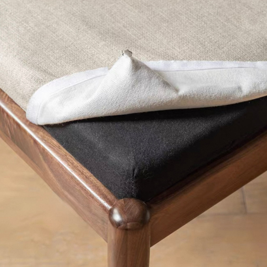 The Duffy Chair pairs oak stained in a rich walnut tone with soft cushioned upholstery, creating a balance of comfort and refined design. Its rounded frame and neutral fabric make it a versatile piece for dining rooms, home offices, or stylish accent seating.